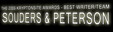 The KryptonSite Awards are an annual tradition at KryptonSite.com, honoring the best and most popular episodes and aspects of the CW TV series Smallville. Winners are picked from a nomination process followed by a choosing of the final nominees. See past winners! 2002 - 2003 - 2004 - 2005 Smallville and its characters are copyright ©2006 Warner Bros. & DC Comics. This is a fan site and not authorized by the WB, the CW, or DC. The term "Kryptonite" is a trademark of DC Comics. Page copyright ©2006 KryptonSite, unless the material is noted as coming from someplace else or being by an individual author. Smallville Season Five starred Tom Welling, Kristin Kreuk, Michael Rosenbaum, John Glover, John Schneider, Annette O'Toole, Erica Durance, and Allison Mack. |