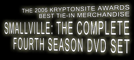 The KryptonSite Awards are an annual tradition at KryptonSite.com, honoring the best and most popular episodes and aspects of the CW TV series Smallville. Winners are picked from a nomination process followed by a choosing of the final nominees. See past winners! 2002 - 2003 - 2004 - 2005 Smallville and its characters are copyright ©2006 Warner Bros. & DC Comics. This is a fan site and not authorized by the WB, the CW, or DC. The term "Kryptonite" is a trademark of DC Comics. Page copyright ©2006 KryptonSite, unless the material is noted as coming from someplace else or being by an individual author. Smallville Season Five starred Tom Welling, Kristin Kreuk, Michael Rosenbaum, John Glover, John Schneider, Annette O'Toole, Erica Durance, and Allison Mack. |