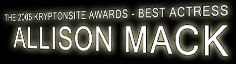 The KryptonSite Awards are an annual tradition at KryptonSite.com, honoring the best and most popular episodes and aspects of the CW TV series Smallville. Winners are picked from a nomination process followed by a choosing of the final nominees. See past winners! 2002 - 2003 - 2004 - 2005 Smallville and its characters are copyright ©2006 Warner Bros. & DC Comics. This is a fan site and not authorized by the WB, the CW, or DC. The term "Kryptonite" is a trademark of DC Comics. Page copyright ©2006 KryptonSite, unless the material is noted as coming from someplace else or being by an individual author. Smallville Season Five starred Tom Welling, Kristin Kreuk, Michael Rosenbaum, John Glover, John Schneider, Annette O'Toole, Erica Durance, and Allison Mack. |