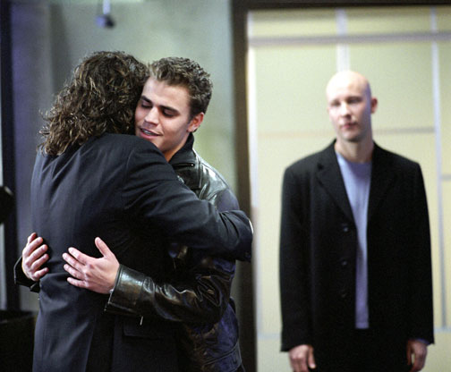 John Glover as Lionel Luthor, Paul Wasilewski as Lucas, and Michael Rosenbaum as Lex Luthor, from the episode "Prodigal"