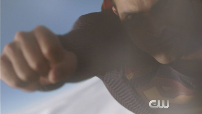 Thanks to Mr. Video, we have screen captures from this clip, which starts with Clark Kent and ends with a Supergirl/Superman team-up and rescue. Melissa Benoist is in it too, of course; you can also find Mehcad Brooks (James), Calista Flockhart (Cat), and even Cat’s new assistant within. (Spoilers!)
