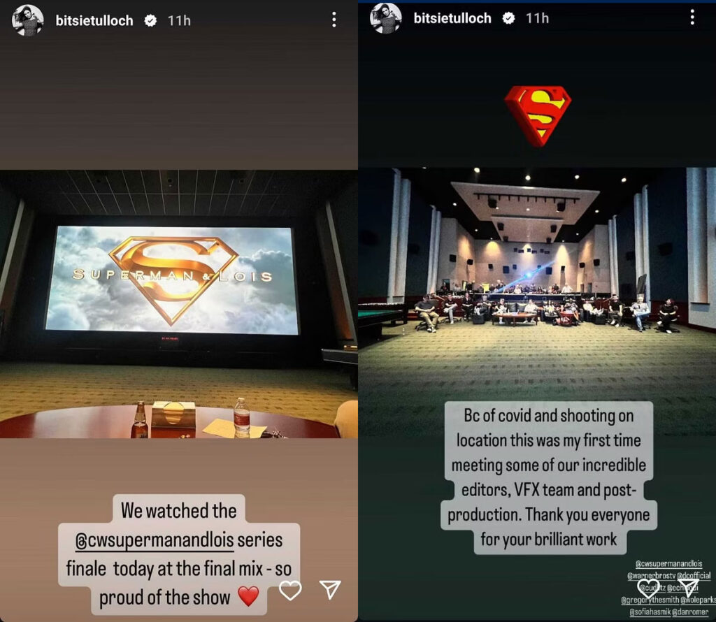 “We watched the Superman & Lois series finale at the final mix – so proud of the show,” she posted on her Instagram story with a heart emoji. She noted that this was her first time meeting much of the S&L post-production team as things like COVID got in the way during the process, not to mention, of course, that she was filming in Vancouver.