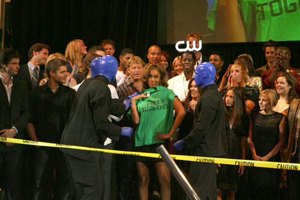 Welling and Jensen Ackles look on as Tyra Banks is given
