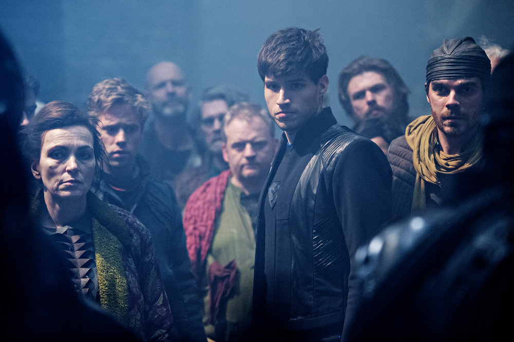 KRYPTON -- "The Rankless Initiative" Episode 103 -- Pictured: (l-r) Una Carroll as Vendor, Cameron Cuffe as Seg-El -- (Photo by: Steffan Hill/Syfy)