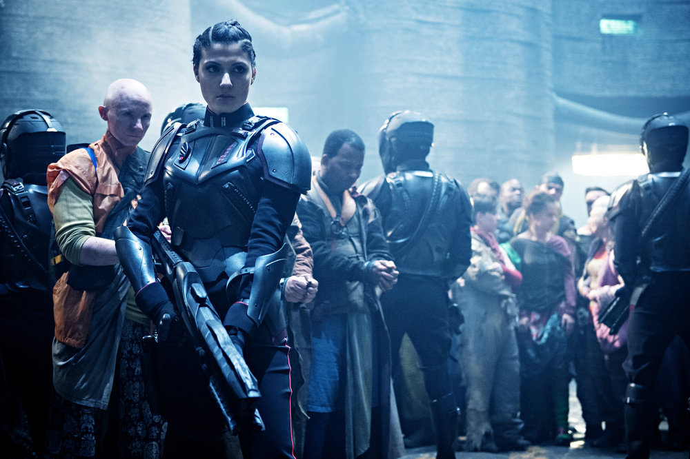 KRYPTON -- "The Rankless Initiative" Episode 103 -- Pictured: (l-r) Una Carroll as Vendor, Cameron Cuffe as Seg-El -- (Photo by: Steffan Hill/Syfy)