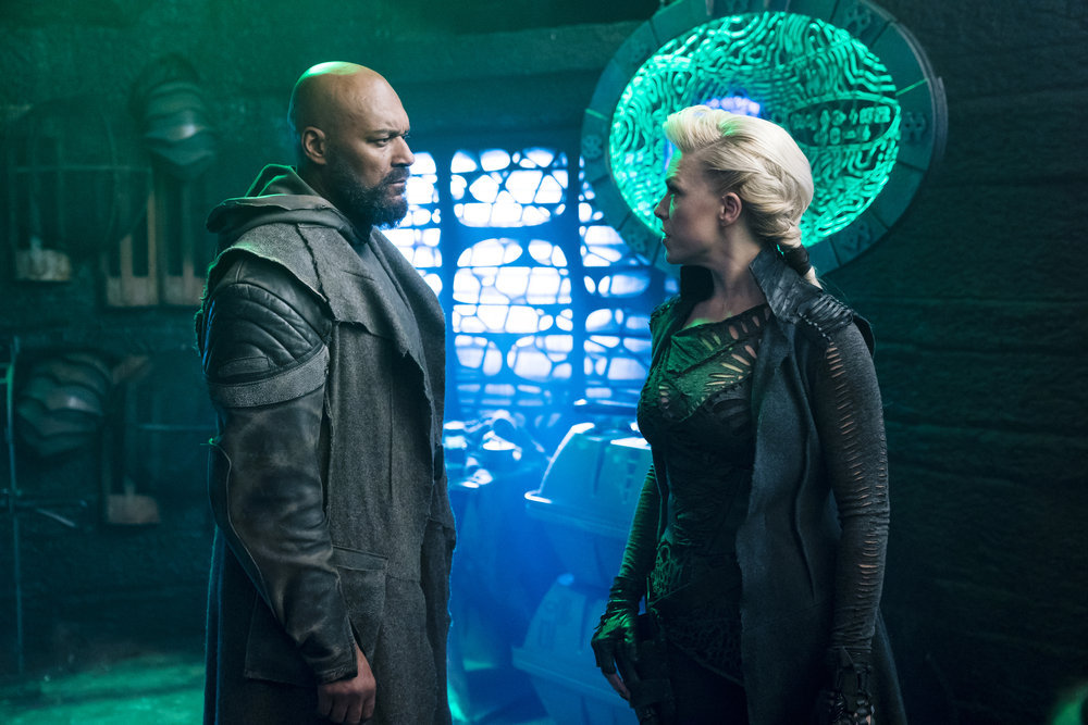 KRYPTON -- "Savage Night" Episode 108 -- Pictured: (l-r) Colin Salmon as General Zod, Hannah Waddingham as Jax-Ur -- (Photo by: Steffan Hill/Syfy)