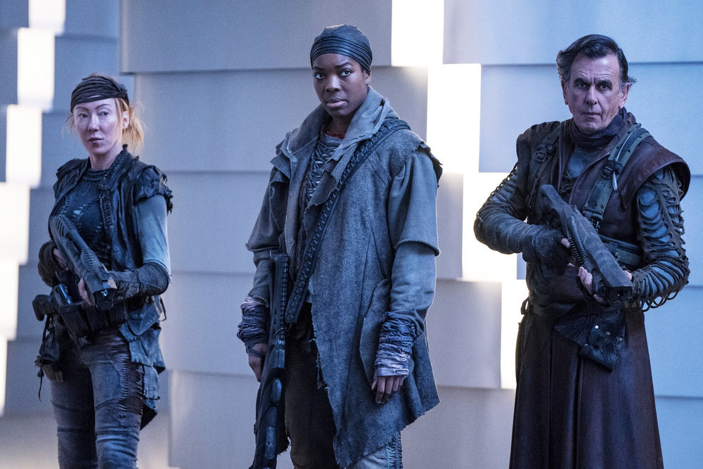 KRYPTON -- "Savage Night" Episode 108 -- Pictured: (l-r) Black Zero Operative, Ann Ogbomo as Jayna-Zod, Black Zero Operative -- (Photo by: Steffan Hill/Syfy)