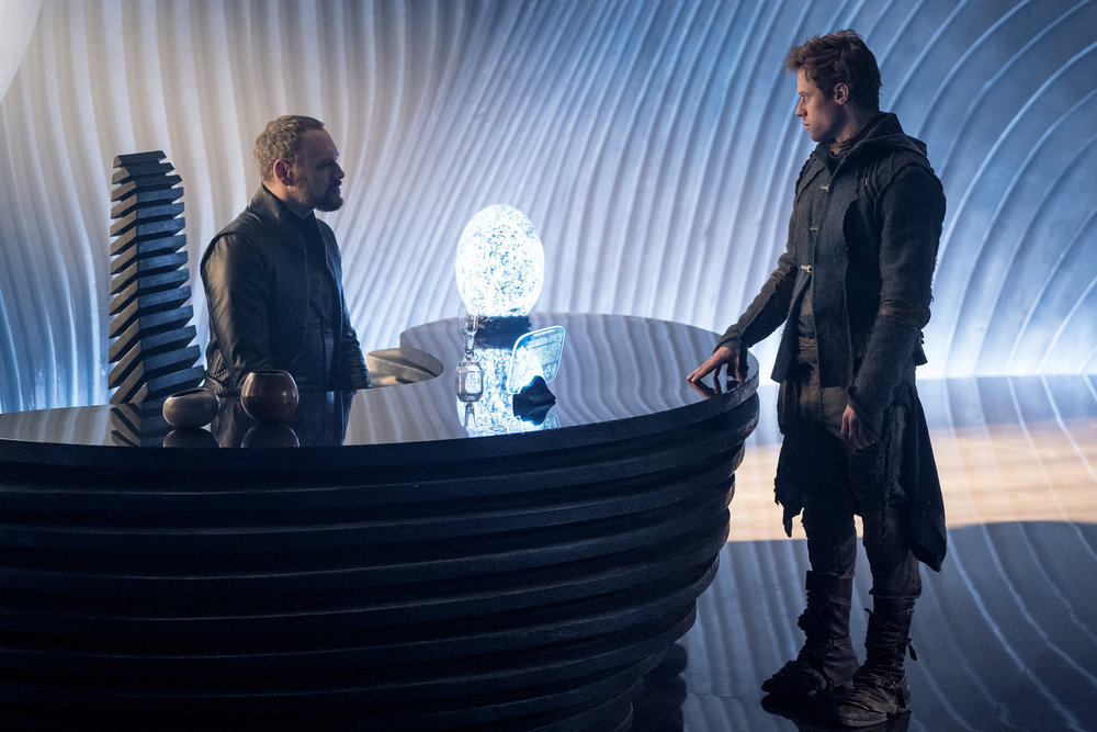 KRYPTON -- "Savage Night" Episode 108 -- Pictured: (l-r) Elliot Cowan as Daron-Vex, Shaun Sipos as Adam Strange - (Photo by: Steffan Hill/Syfy)