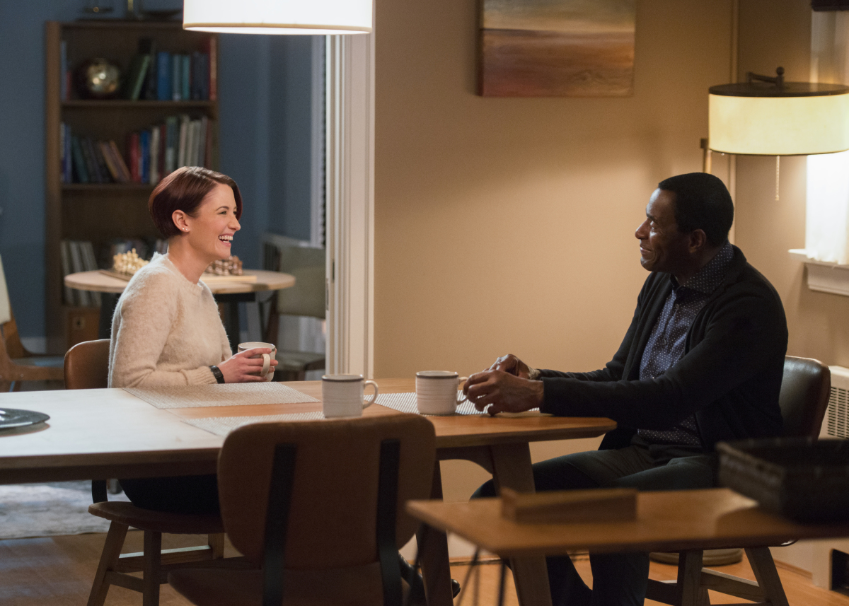 Supergirl -- "Schott Through the Heart" -- Image Number: SPG314c_0225.jpg -- Pictured (L-R): Chyler Leigh as Alex and Carl Lumbly as MÕyrnn JÕonzz -- Photo: Diyah Pera/The CW -- © 2018 The CW Network, LLC. All rights reserved.