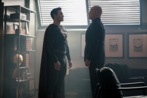 There were so many moments in this episode that 15 year old me would have just been losing his mind. I mean, Clark and the boys training together… the inspiration for that was me playing basketball with my dad. There were so many moments that were absolutely that childhood nerd dream come true, definitely starting with the Superman Lex Luthor showdown in the suit. The full Lex… bald, shaven, suited up. It was amazing.