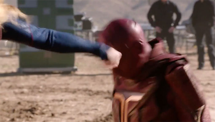 Screen captures from the CBS trailer previewing upcoming episodes of Supergirl