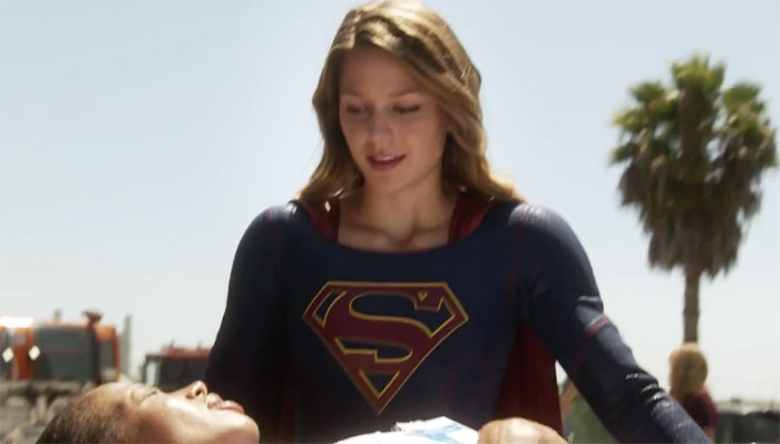 Screen captures from the CBS trailer previewing upcoming episodes of Supergirl