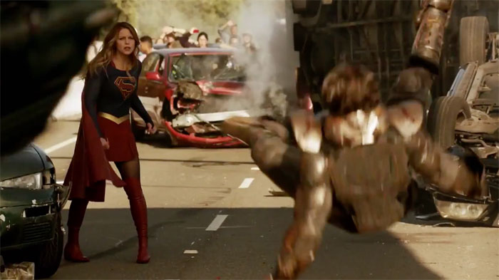 Screen captures from the CBS trailer previewing upcoming episodes of Supergirl