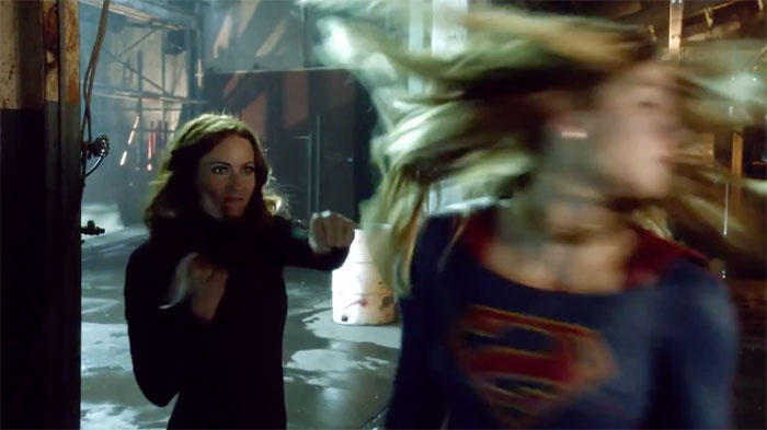 Screen captures from the CBS trailer previewing upcoming episodes of Supergirl