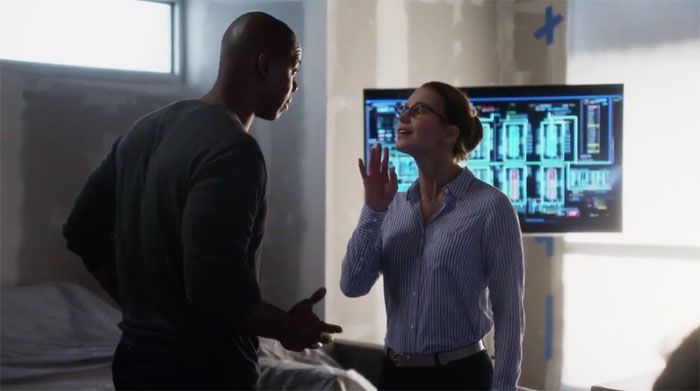 Screen captures from the CBS trailer previewing upcoming episodes of Supergirl