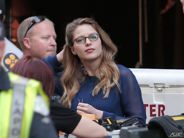 Photographers have caught some photos of Melissa Benoist in her alter ego of Kara Danvers, and now, they’ve also gotten some photos of Melissa on set with Mehcad Brooks (James Olsen).