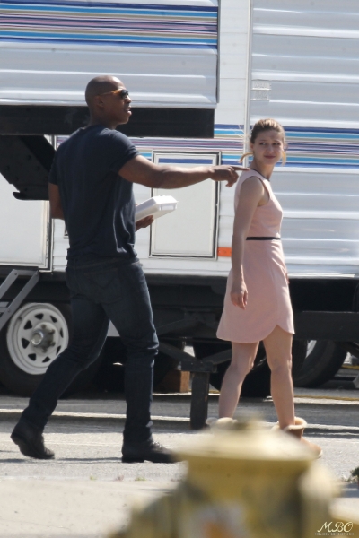Images of Melissa Benoist and Mehcad Brooks on set of the Warner Bros. CBS pilot Supergirl.