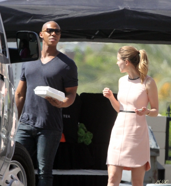 Images of Melissa Benoist and Mehcad Brooks on set of the Warner Bros. CBS pilot Supergirl.