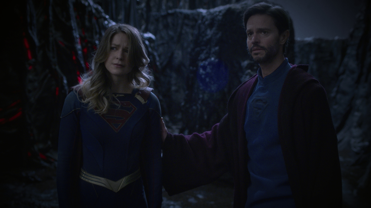 Supergirl -- “Lost Souls” -- Image Number: SPG604fg_0002r.jpg -- Pictured: Melissa Benoist as Supergirl and Jason Behr as Zor-El. Photo: The CW -- © 2021 The CW Network, LLC. All Rights Reserved.