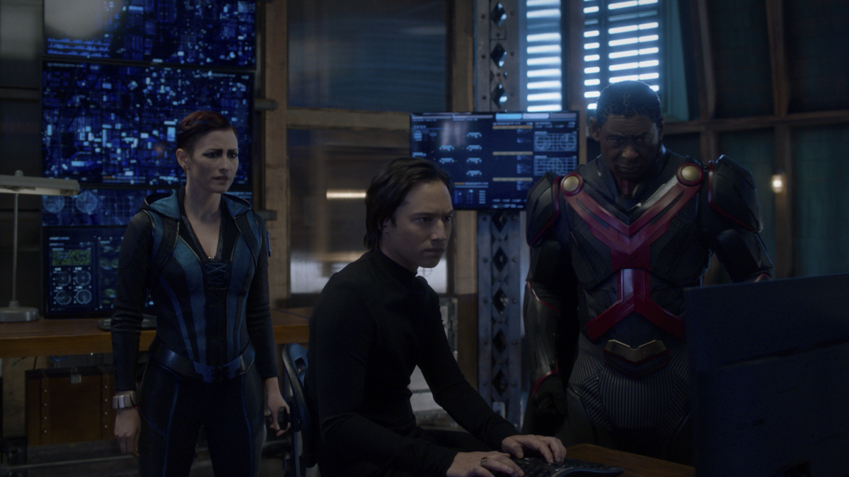 Supergirl -- “Lost Souls” -- Image Number: SPG604fg_0003r.jpg -- Pictured: Chyler Leigh as Sentinal, Jesse Rath as Brainiac-5 and David Harewood as J’onn J’onzz. Photo: The CW -- © 2021 The CW Network, LLC. All Rights Reserved.
