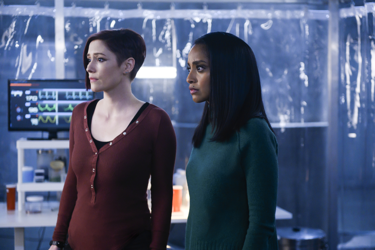 Supergirl -- "American Dreamer" -- Image Number: SPG419b_0302b.jpg -- Pictured (L-R): Chyler Leigh as Alex Danvers and Azie Tesfai as Kelly Olsen -- Photo: Diyah Pera/The CW -- © 2019 The CW Network, LLC. All Rights Reserved.