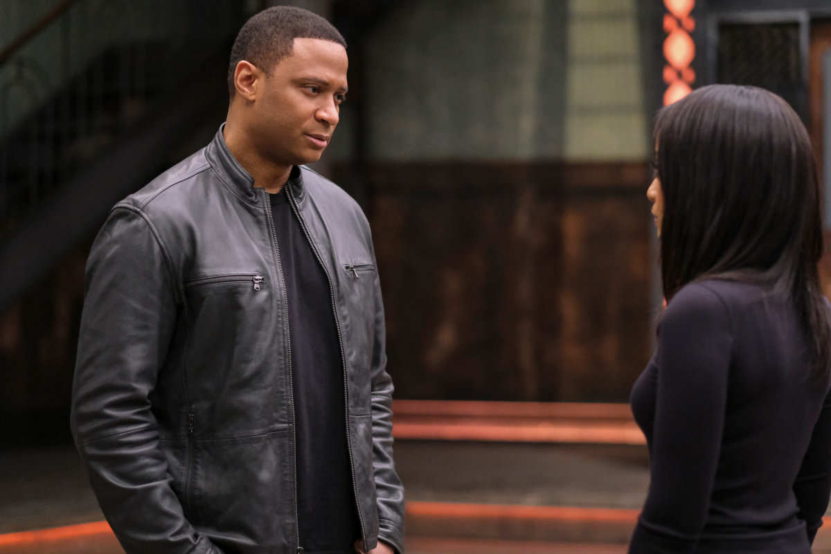 Supergirl -- “Blind Spots” -- Image Number: SPG612a_0072r -- Pictured (L-R): David Ramsey as John Diggle and Azie Tesfai as Kelly Olsen -- Photo: Bettina Strauss /The CW -- © 2021 The CW Network, LLC. All Rights Reserved.
