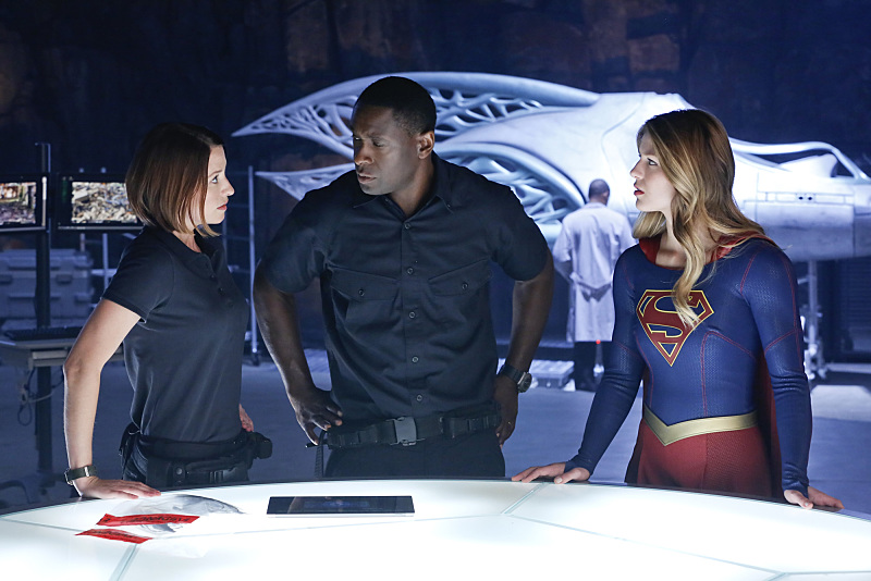 "How Does She Do It?" -- Kara's two identities are stretched thin when Supergirl must protect National City from a series of bombings and Kara is tasked with babysitting Cat's son, Carter, on SUPERGIRL, Monday, Nov. 16 (8:00-9:00 PM, ET/PT) on the CBS Television Network. Pictured left to right: Chyler Leigh, David Harewood and Melissa Benoist Photo: Robert Voets/Warner Bros. Entertainment Inc. © 2015 WBEI. All rights reserved.
