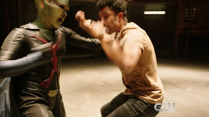 S030A-O31-SPG-110-15We get some good still frames of Sharon Leal‘s Miss Martian as well as Dichen Lachman’s Roulette in some screen captures from the extended version of the trailer for the October 31 episode of Supergirl, titled “Survivors.”