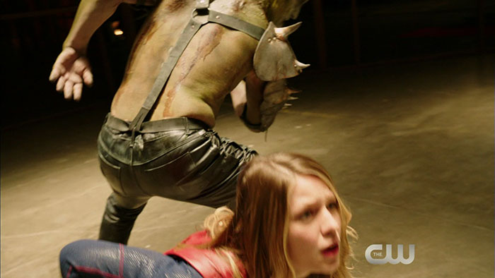 Screen captures from the extended promo trailer for the Supergirl episode “Survivors,” featuring Miss Martian and Roulette