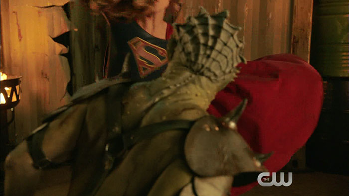 Screen captures from the extended promo trailer for the Supergirl episode “Survivors,” featuring Miss Martian and Roulette
