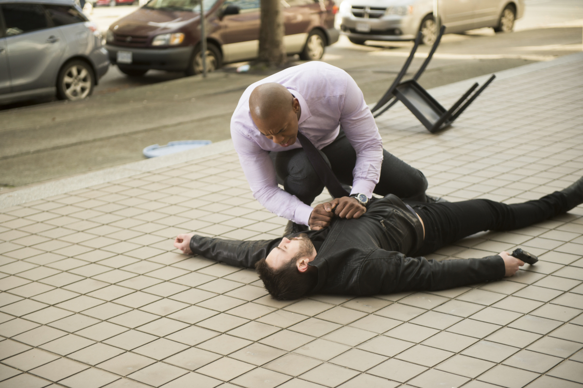 Supergirl -- "For Good" -- Image Number: SPG312b_0046.jpg -- Pictured: Mehcad Brooks as James Olsen -- Photo: Diyah Pera/The CW -- © 2018 The CW Network, LLC. All Rights Reserved.
