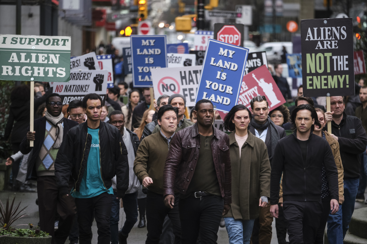 SUPERGIRL TAKES A STAND — Between Ben Lockwood’s (Sam Witwer) new push to stir up the anti-alien movement and the Elite’s desire to target Lockwood and his minions, Supergirl (Melissa Benoist) is concerned about the safety of the American people — both human and alien. When Lockwood organizes a rally, the aliens decide to peacefully protest. Brainiac (Jesse Rath) and J’onn (David Harewood) join the alien march while Supergirl and Dreamer (Nicole Maines) patrol to keep everyone safe. Meanwhile, James (Mehcad Brooks) picks up his camera again to cover the march for CatCo, and Hayley (April Parker Jones) assigns Alex (Chyler Leigh) a job that clashes with her beliefs. When The Elite and Ben Lockwood stir up trouble at the rally, Supergirl is forced to take a stand. Jonathan Bennett guest stars. Andi Armaganian directed the episode written by Rob Wright & Jess Kardos (#414). Original airdate 3/10/2019.