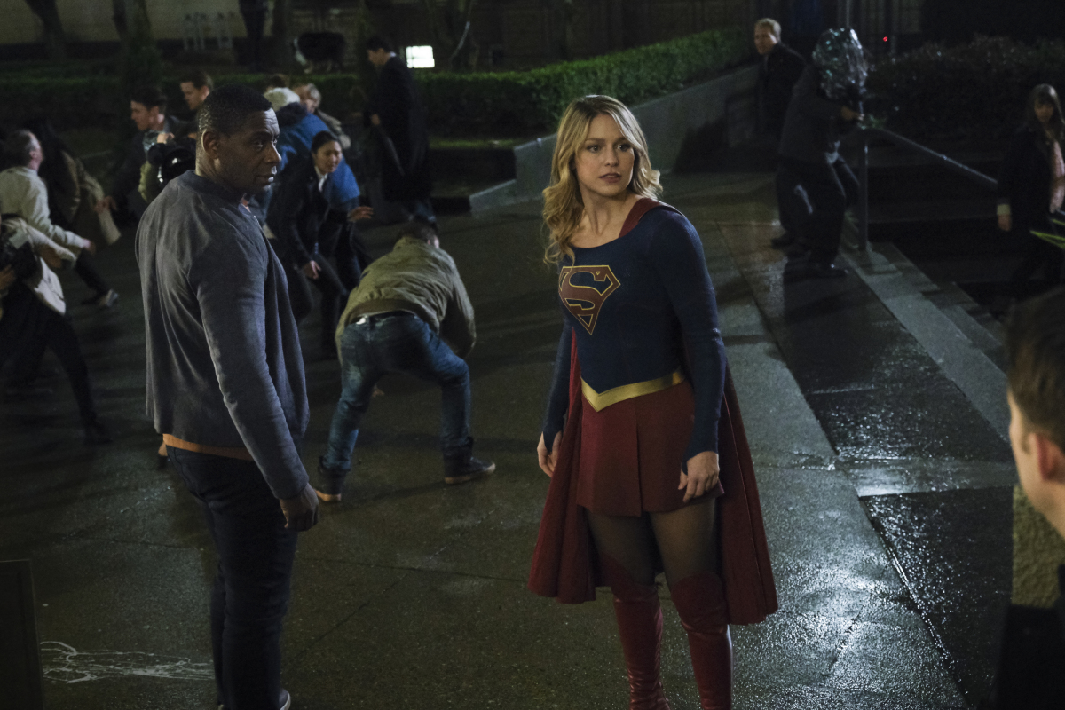 Supergirl -- "Stand and Deliver" -- Image Number: SPG414B_0297b.jpg -- Pictured (L-R): David Harewood as Hank Henshaw/JÕonn JÕonzz and Melissa Benoist as Kara/Supergirl -- Photo: Jeff Weddell/The CW -- © 2019 The CW Network, LLC. All Rights Reserved.