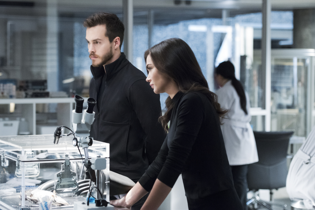 Supergirl -- "Of Two Minds" -- Image Number: SPG316b_0441.jpg -- Pictured (L-R): Chris Wood as Mon-El and Amy Jackson as Imra Ardeen/Saturn Girl -- Photo: Dean Buscher/The CW -- © 2018 The CW Network, LLC. All rights reserved.