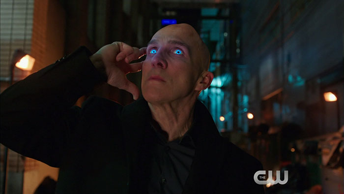 The episode is called “Distant Sun” and while we don’t have any official photos yet, we do have some screen captures from the episode’s trailer courtesy of Mr. Video… and now we have a trailer, too! Granted, this trailer doesn’t have Lynda Carter in it, but it does have some Kara vs. Mon-El action, some Teri Hatcher and Kevin Sorbo, and some aliens “from the mind of director Kevin Smith!” And, dang, does Mon-El (Chris Wood) get smacked around more than once next week!