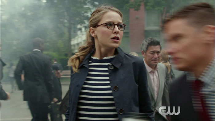 Thanks to Mr. Video, we now have some screen captures from the awesome “Hero In You” promo trailer for Supergirl that The CW released earlier this week. These caps include the Crisis on Infinite Earths tribute as well as a few more scenes we haven’t seen before. And, of course, Brenda Strong looking fierce as whoever she is from Cadmus, which is the next-best thing if we can’t have Calista Flockhart being fierce as Cat Grant every week.
