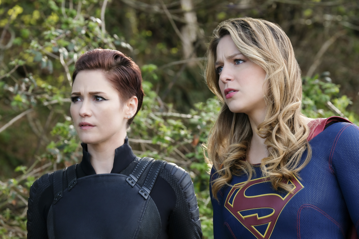 Supergirl -- "The Quest for Peace" -- Image Number: SPG422C_0127b.jpg -- Pictured (L-R): Chyler Leigh as Alex Danvers and Melissa Benoist as Kara/Supergirl -- Photo: Robert Falconer/The CW -- © 2019 The CW Network, LLC. All Rights Reserved.