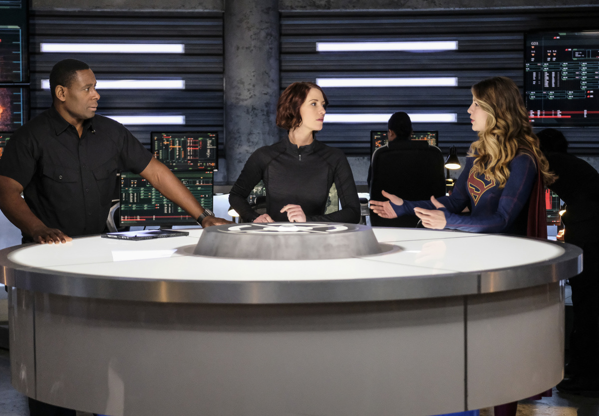 Supergirl -- "Star-Crossed" -- SPG216a_0022.jpg -- Pictured (L-R): David Harewood as Hank Henshaw, Chyler Leigh as Alex Danvers, and Melissa Benoist as Kara/Supergirl -- Photo: Robert Falconer/The CW -- é 2017 The CW Network, LLC. All Rights Reserved
