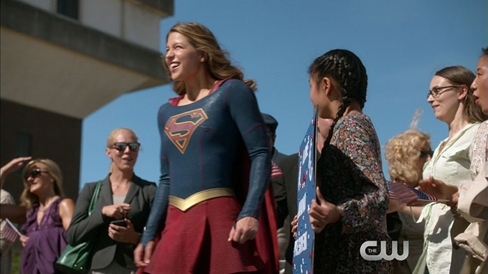 Thanks to Mr. Video, we have screen captures from a preview clip promoting Monday’s new episode of Supergirl. The video clip itself doesn’t appear to be online yet, but as you’ll see from the screencaps it features Melissa Benoist (Kara/Supergirl) and Lynda Carter as the President of the United States.