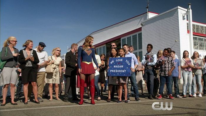 Thanks to Mr. Video, we have screen captures from a preview clip promoting Monday’s new episode of Supergirl. The video clip itself doesn’t appear to be online yet, but as you’ll see from the screencaps it features Melissa Benoist (Kara/Supergirl) and Lynda Carter as the President of the United States.