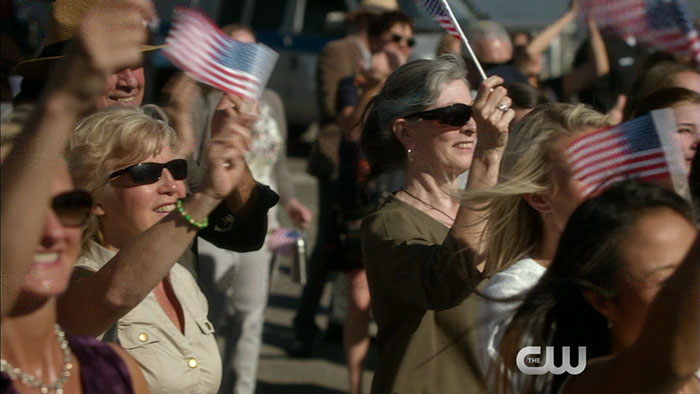 Screen captures from a Supergirl “Welcome to Earth” preview clip featuring Lynda Carter