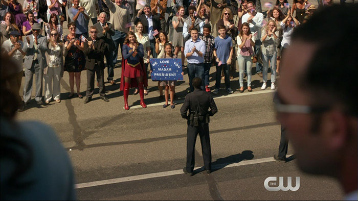 Thanks to Mr. Video, we have screen captures from a preview clip promoting Monday’s new episode of Supergirl. The video clip itself doesn’t appear to be online yet, but as you’ll see from the screencaps it features Melissa Benoist (Kara/Supergirl) and Lynda Carter as the President of the United States.