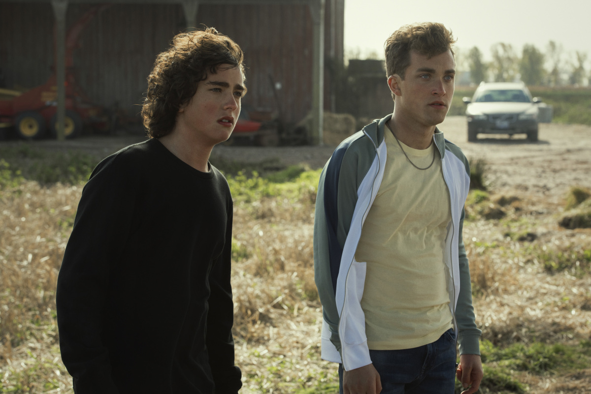 Superman & Lois -- "Pilot" -- Image Number: SML101a_0153r2.jpg -- Pictured (L-R): Alexander Garfin as Jordan Kent and Jordan Elsass as Jonathan Kent -- Photo: Dean Buscher/The CW -- © 2021 The CW Network, LLC. All Rights Reserved.