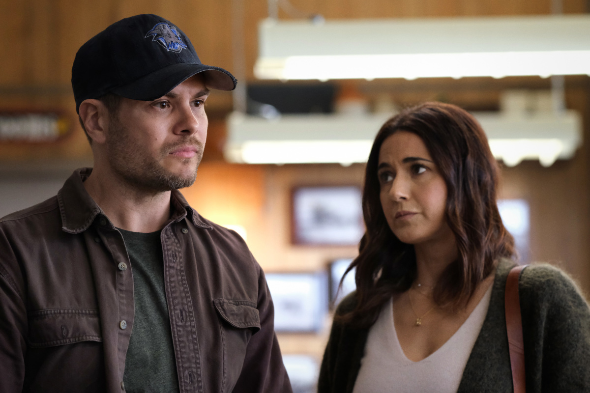 Superman & Lois -- "Fail Safe" -- Image Number: SML113a_0435r.jpg -- Pictured (L-R): Erik Valdez as Kyle Cushing and Emmanuelle Chriqui as Lana Lang Cushing -- Photo: Bettina Strauss/The CW -- © 2021 The CW Network, LLC. All Rights Reserved