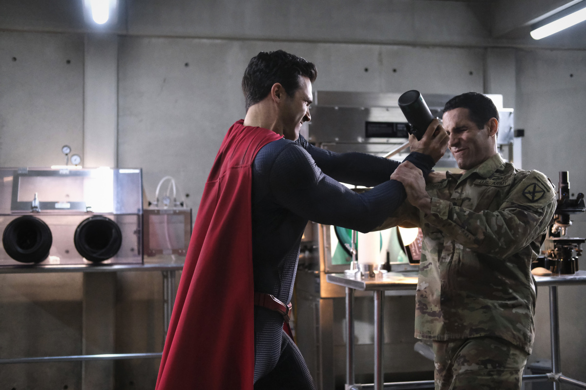 Superman & Lois -- "Man of Steel" -- Image Number: SML108fg_0006r.jpg -- Pictured: Tyler Hoechlin as Superman -- Photo: The CW -- © 2021 The CW Network, LLC. All Rights Reserved.Photo Credit: Bettina Strauss