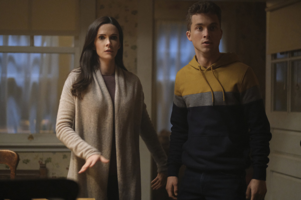Superman & Lois -- "Loyal Subjekts" -- Image Number: SML109a_0100r.jpg -- Pictured (L-R): Bitsie Tulloch as Lois and Jordan Elsass as Jonathan Kent -- Photo: Bettina Strauss/The CW -- © 2021 The CW Network, LLC. All Rights Reserved.Photo Credit: Bettina Strauss