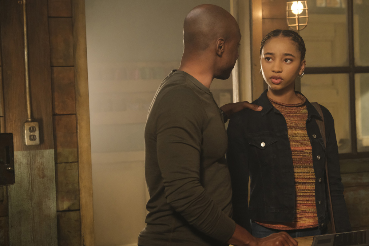 Superman & Lois -- “All is Lost” -- Image Number: SML213b_0108r.jpg -- Pictured (L-R): Wolé Parks as John Henry Irons and Tayler Buck as Natalie Irons -- Photo: Bettina Strauss/The CW -- © 2022 The CW Network, LLC. All Rights Reserved.