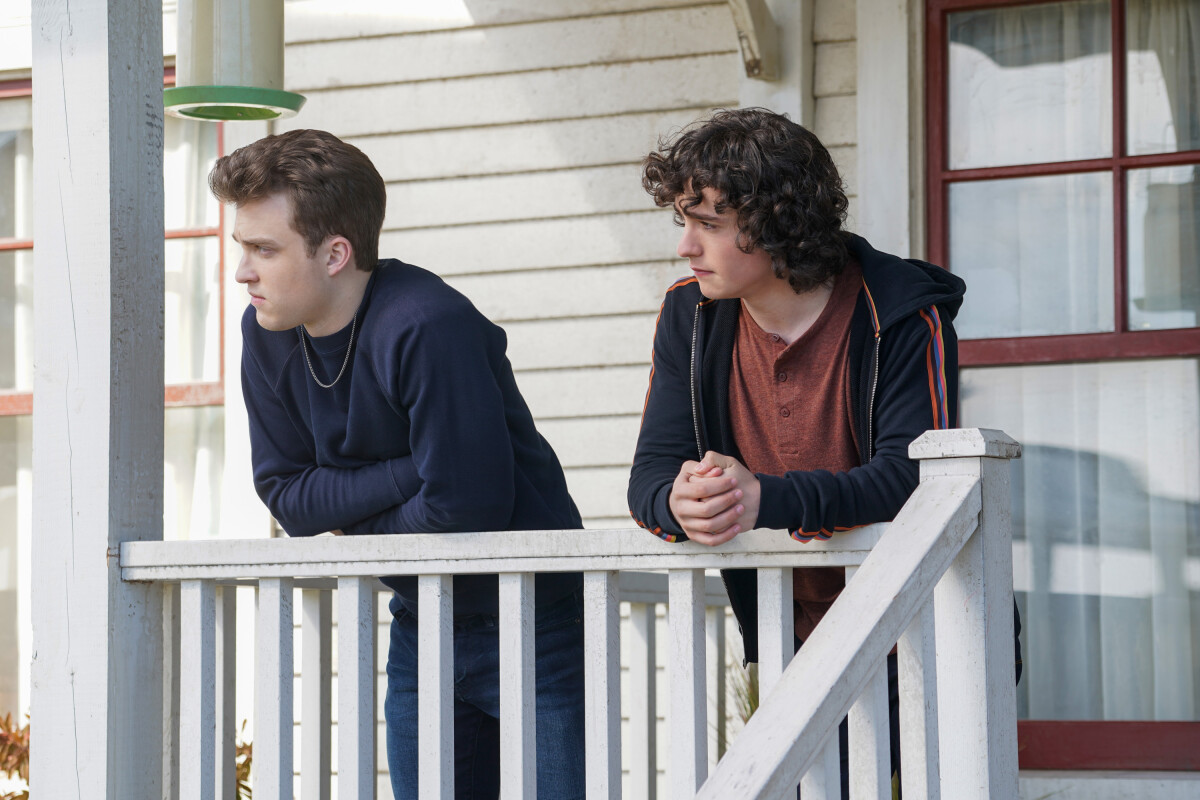 Superman & Lois -- “Worlds War Bizzare” -- Image Number: SML214a_0108r.jpg -- Pictured (L-R): Jordan Elsass as Jonathan Kent and Alexander Garfin as Jordan Kent -- Photo: Shane Harvey/The CW -- © 2022 The CW Network, LLC. All Rights Reserved.