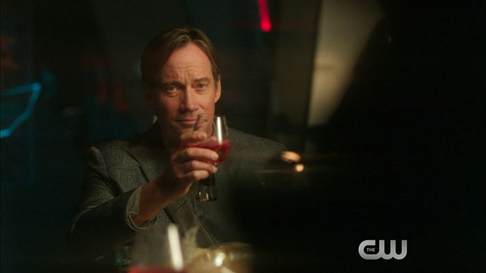 These screen captures from the extended promo trailer from the episode include a very awkward looking dinner party, some aliens, Guardian, Teri Hatcher, Kevin Sorbo, and even a peek at Darren Criss in his character of the Music Meister from the upcoming crossover with The Flash. You can read more about “Star-Crossed” here.