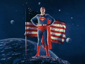 The first time that audiences would thrill to their hero’s adventures on the big screen would come in animated form when a series of shorts by the Fleischer brothers came to theaters in 1941.  These Oscar-nominated cartoons used an animation technique called rotoscoping, which involved tracing over the movements of a live actor to achieve a very realistic quality.  Fans would find the voice of this first animated Superman quite familiar, as Bud Collyer continued to play the part here as well.